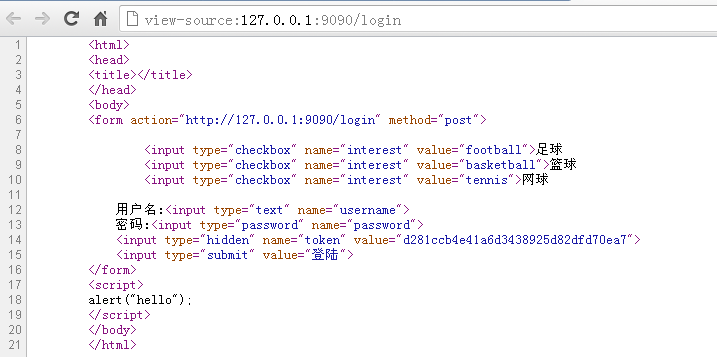 我们看到token已经有输出值,你可以不断的刷新,可以看到这个值在不断的变化。这样就保证了每次显示form表单的时候都是唯一的,用户递交的表单保持了唯一性。